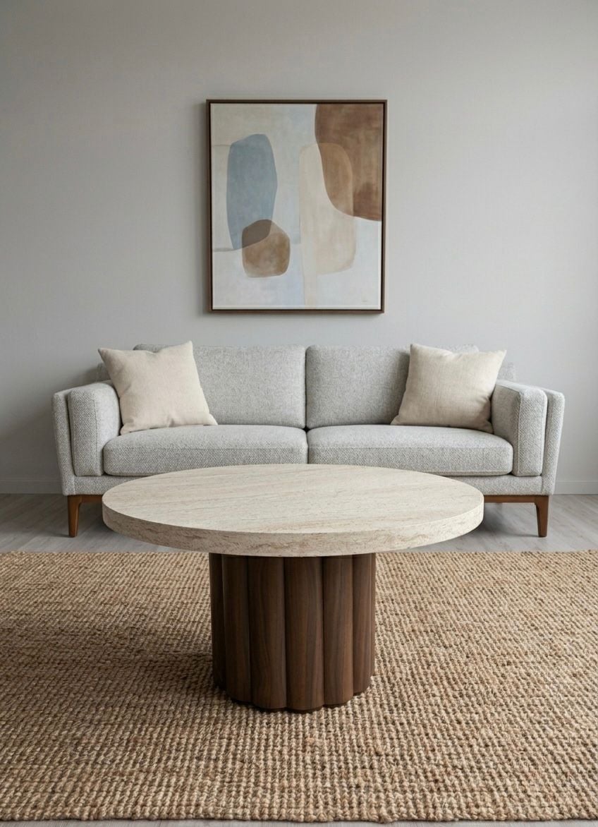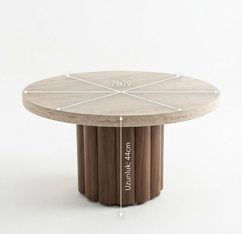 Atina Yuvarlak Ceviz-Traverten Orta Sehpa 79x79