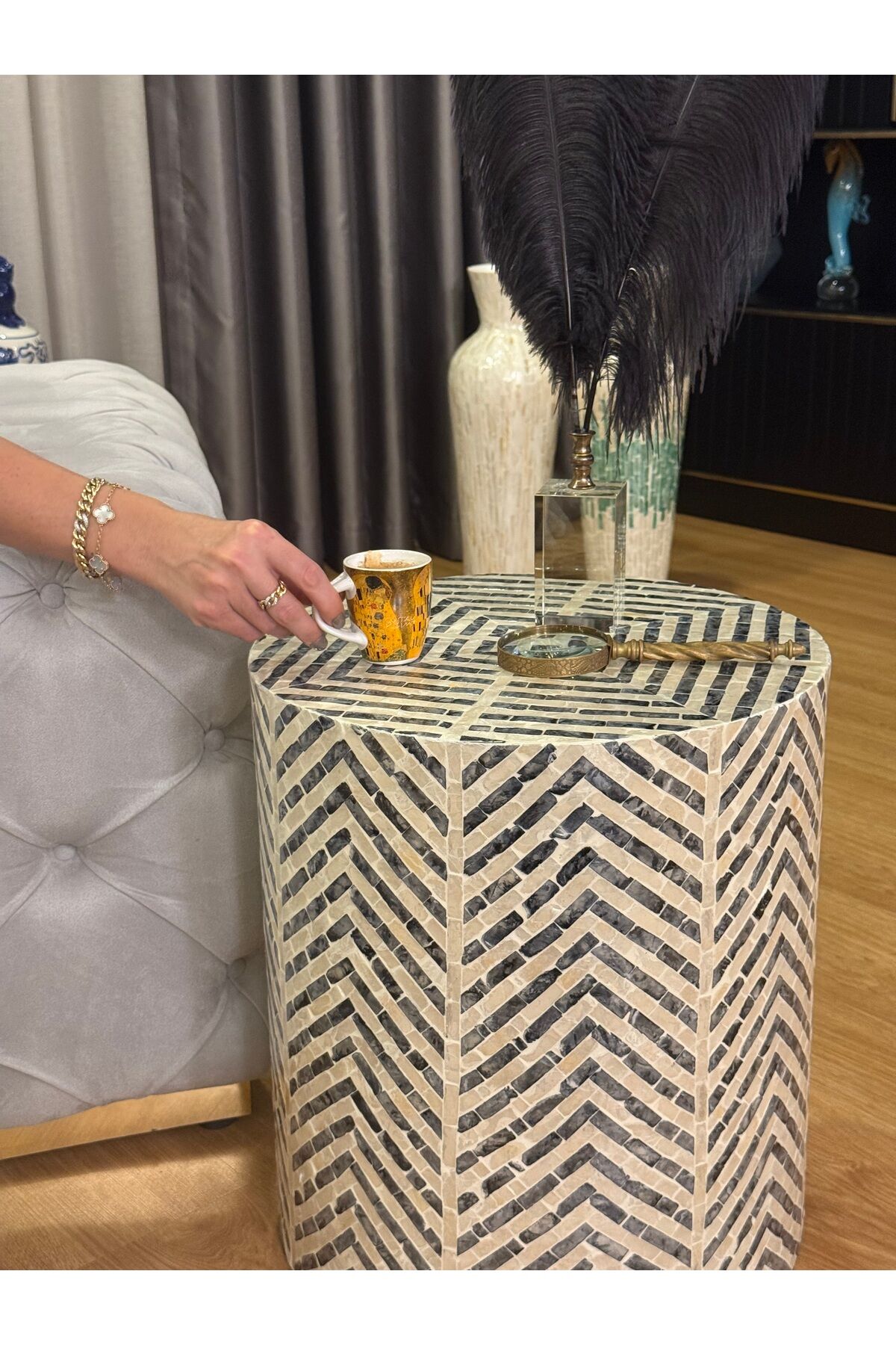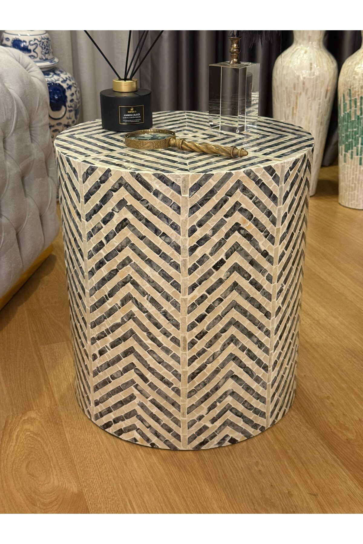 Aveline Yan Sehpa/Tabure El İşçiliği Sedef 40x40 H:45