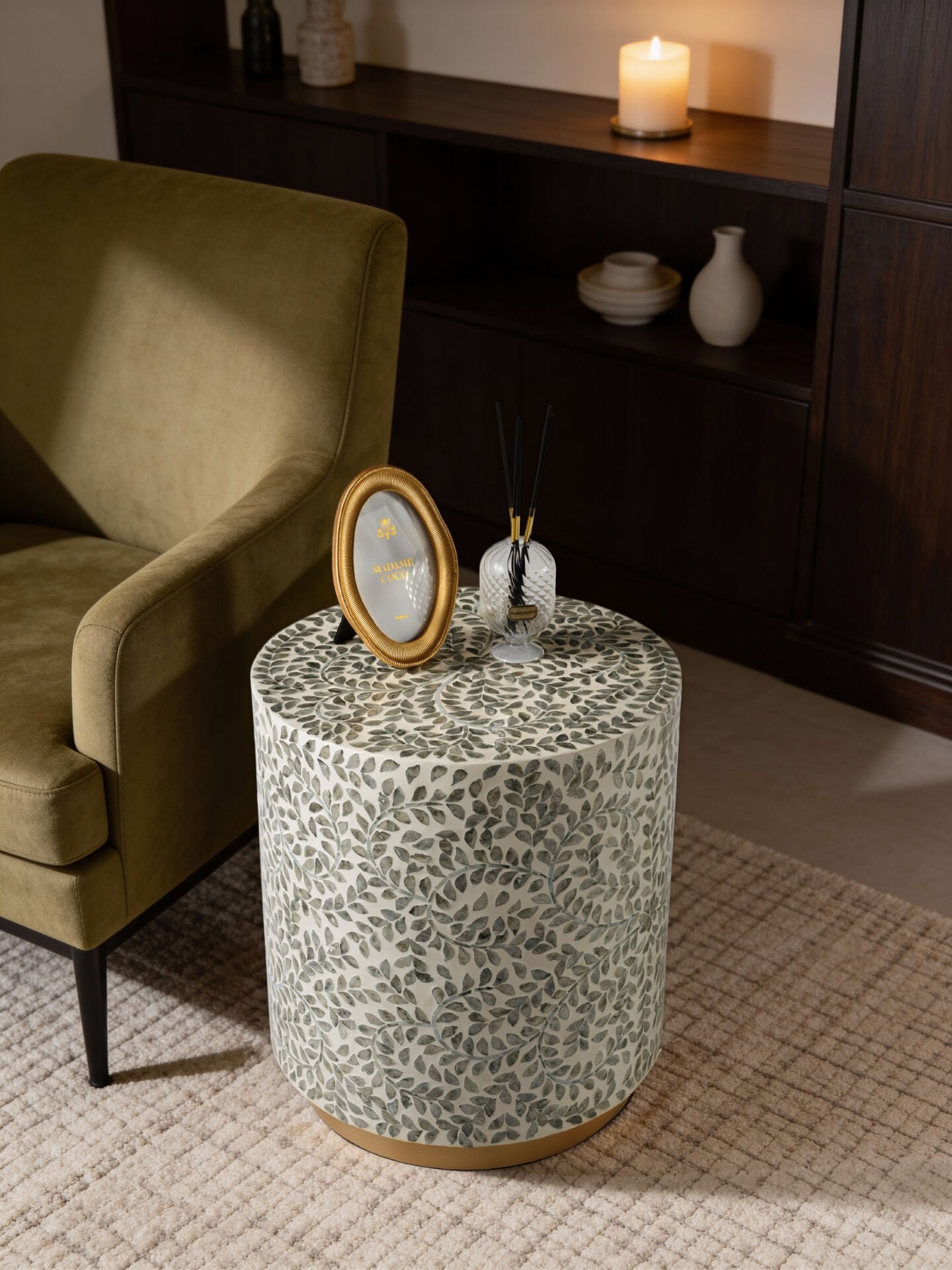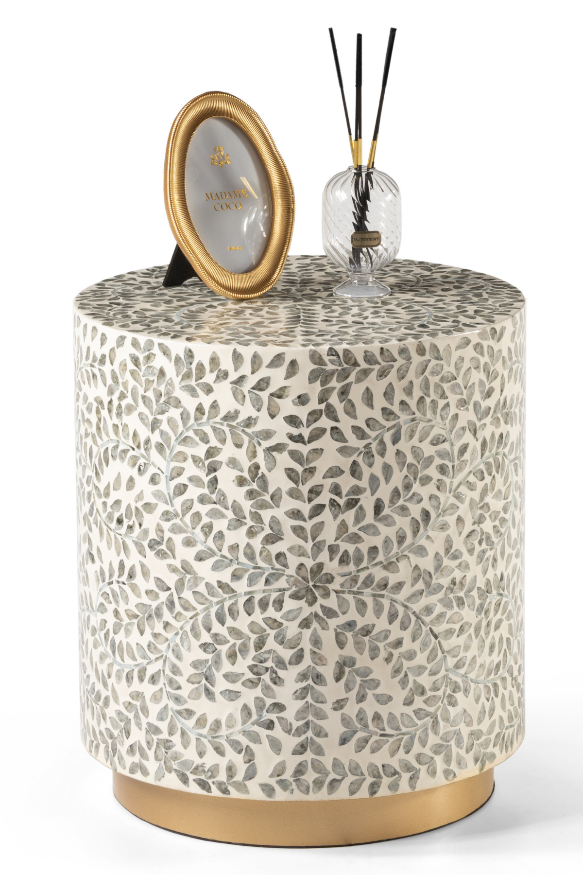 Evira Kaplama Lüks El İşçiliği Sedef Kaplama Yan Sehpa/Tabure 40x40 H:45