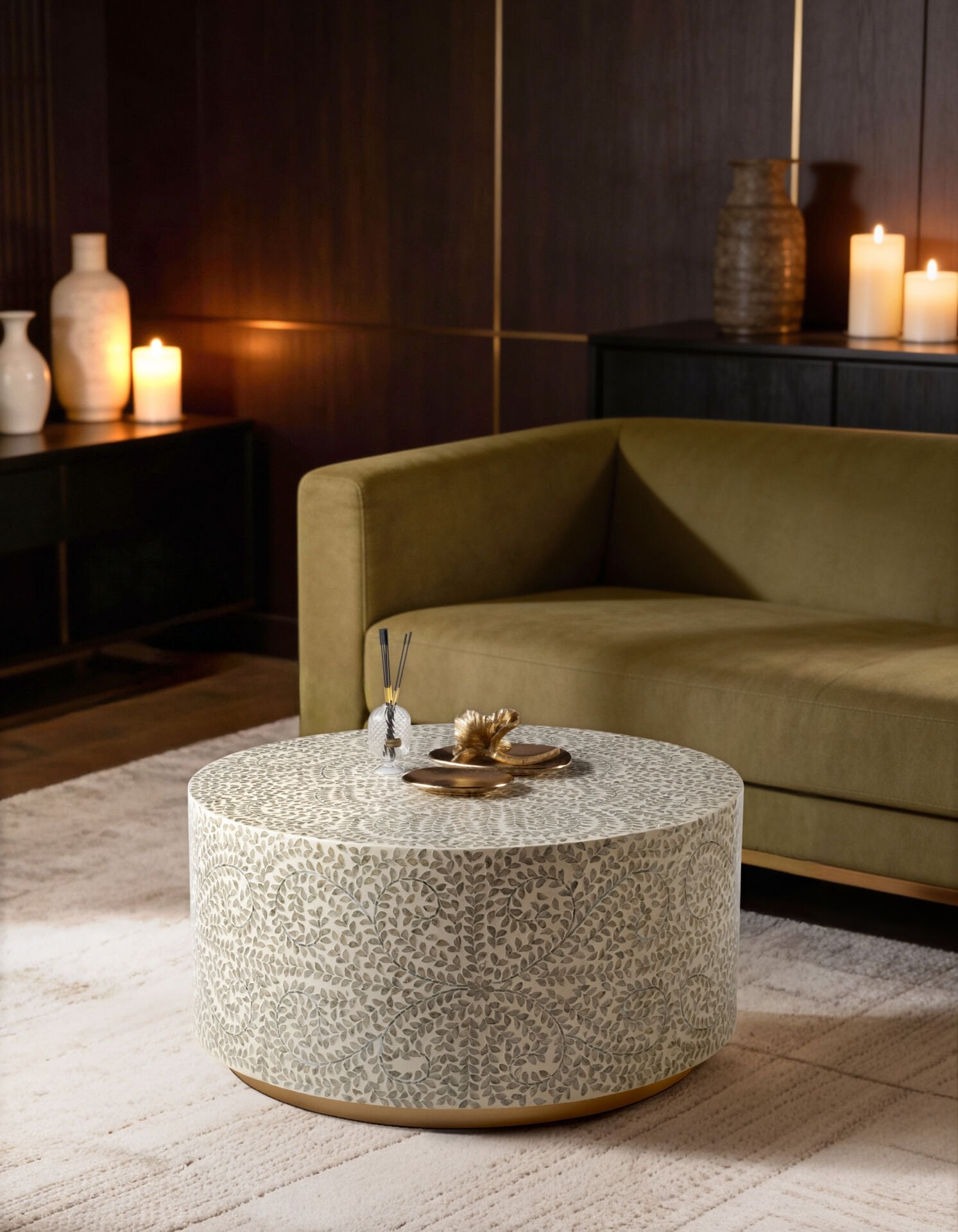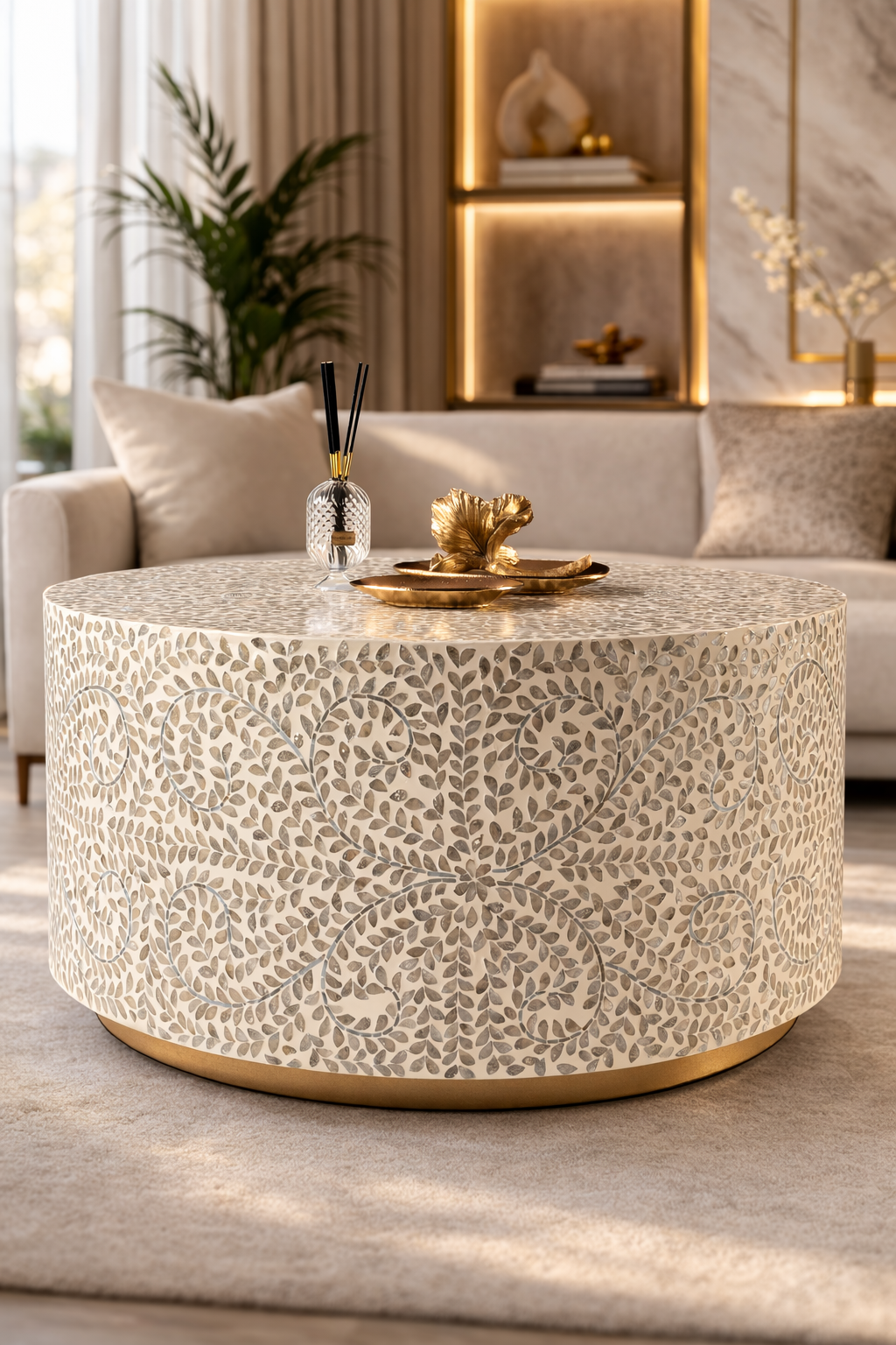 Evira Orta Sehpa Kaplama El işçiliği 90x90 H:45 Salon