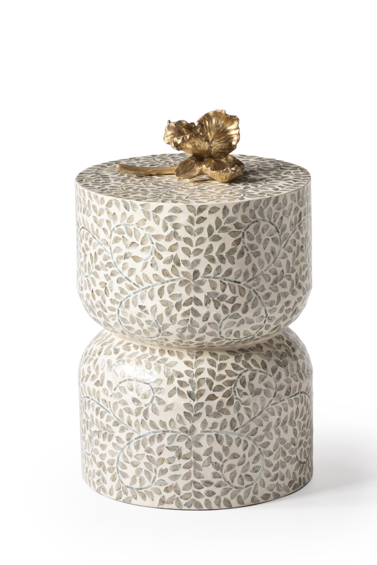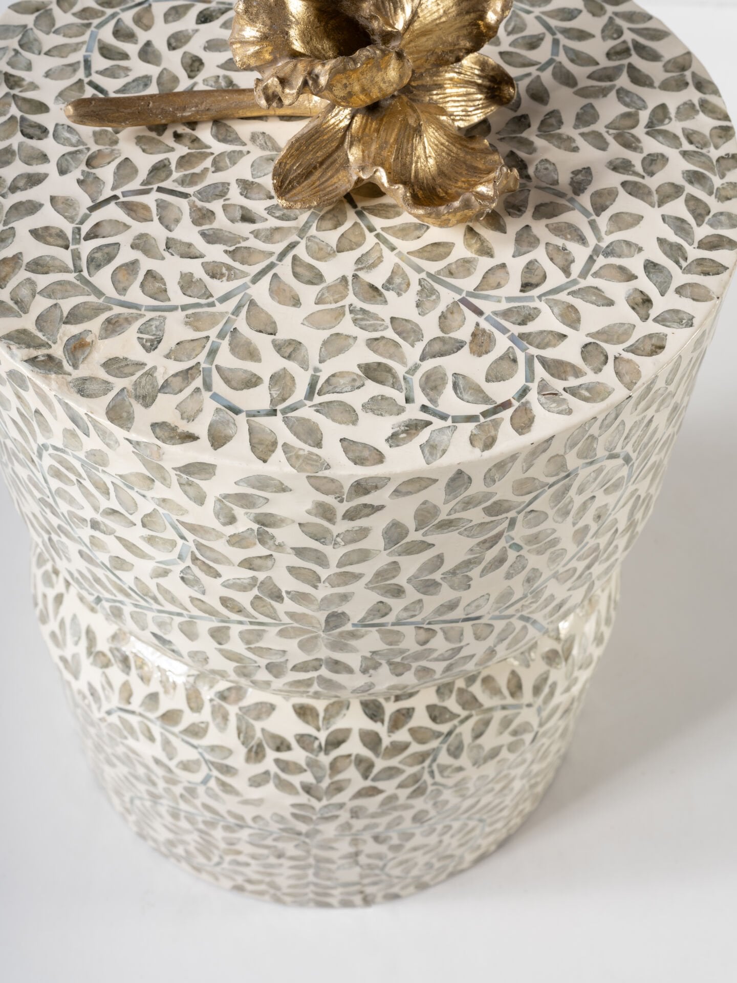 Lume Gri Sedef Kaplama El İşçliği Lüks Modern Yan Sehpa Tabure 35x35 H:40