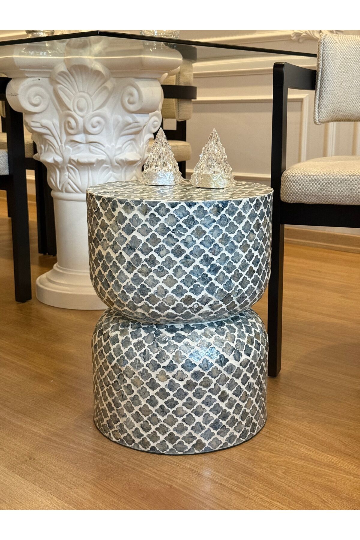 Lume Sedefli El İşçliği Lüks Modern Yan Sehpa Tabure 35x35 H:40