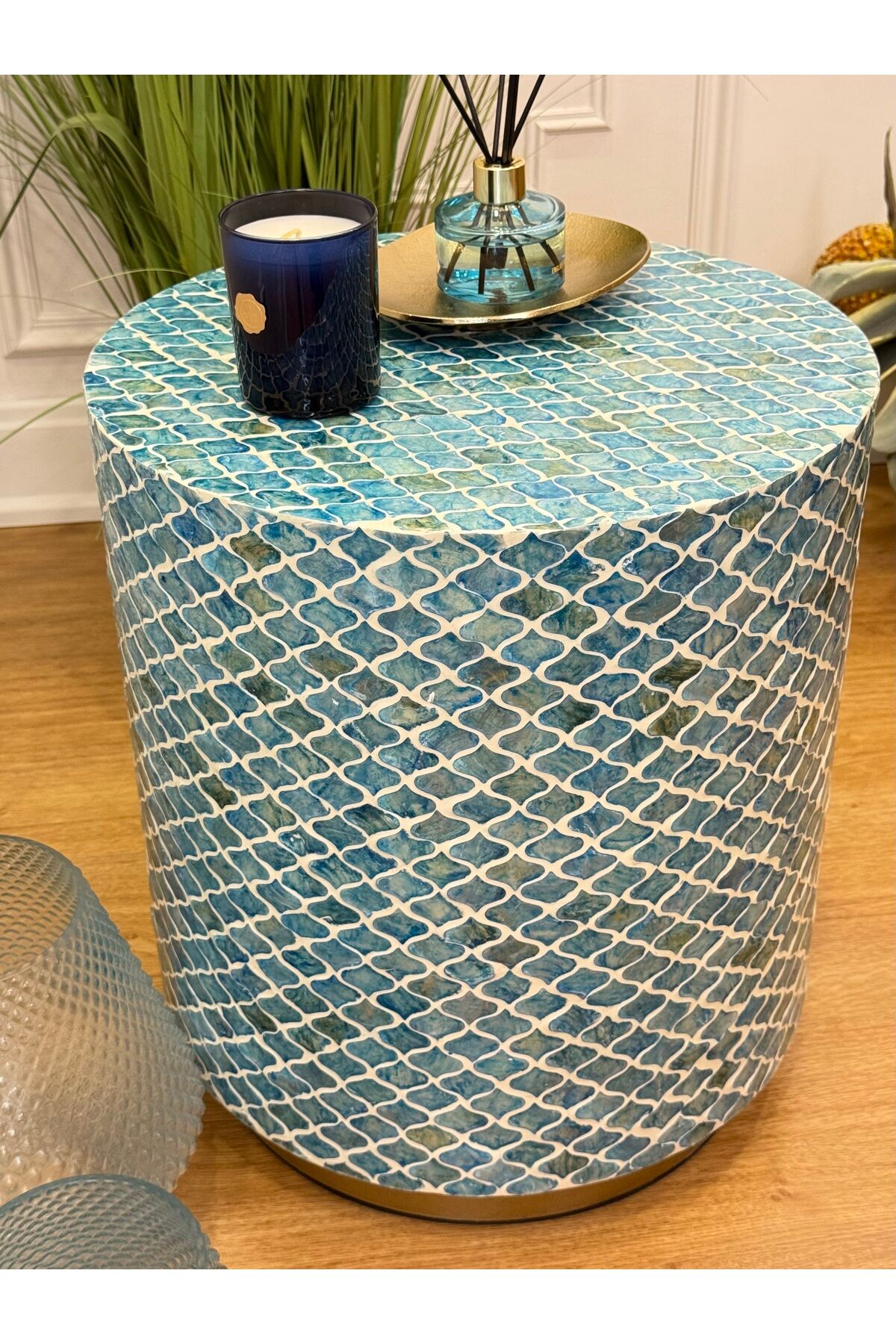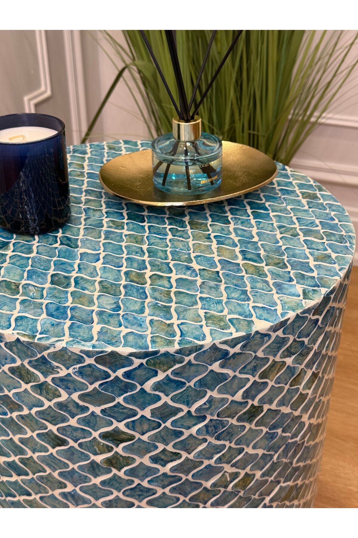 Modern ve zamansız tasarımıyla yaşam alanlarınıza sofistike bir dokunuş katan doğal taş mozaik kaplama silindir yan sehpa, hem dekoratif hem fonksiyonel kullanımıyla öne çıkar. El işçiliğiyle oluşturulan mozaik yüzeyi sayesinde her ürün kendine özgü ve benzersizdir.