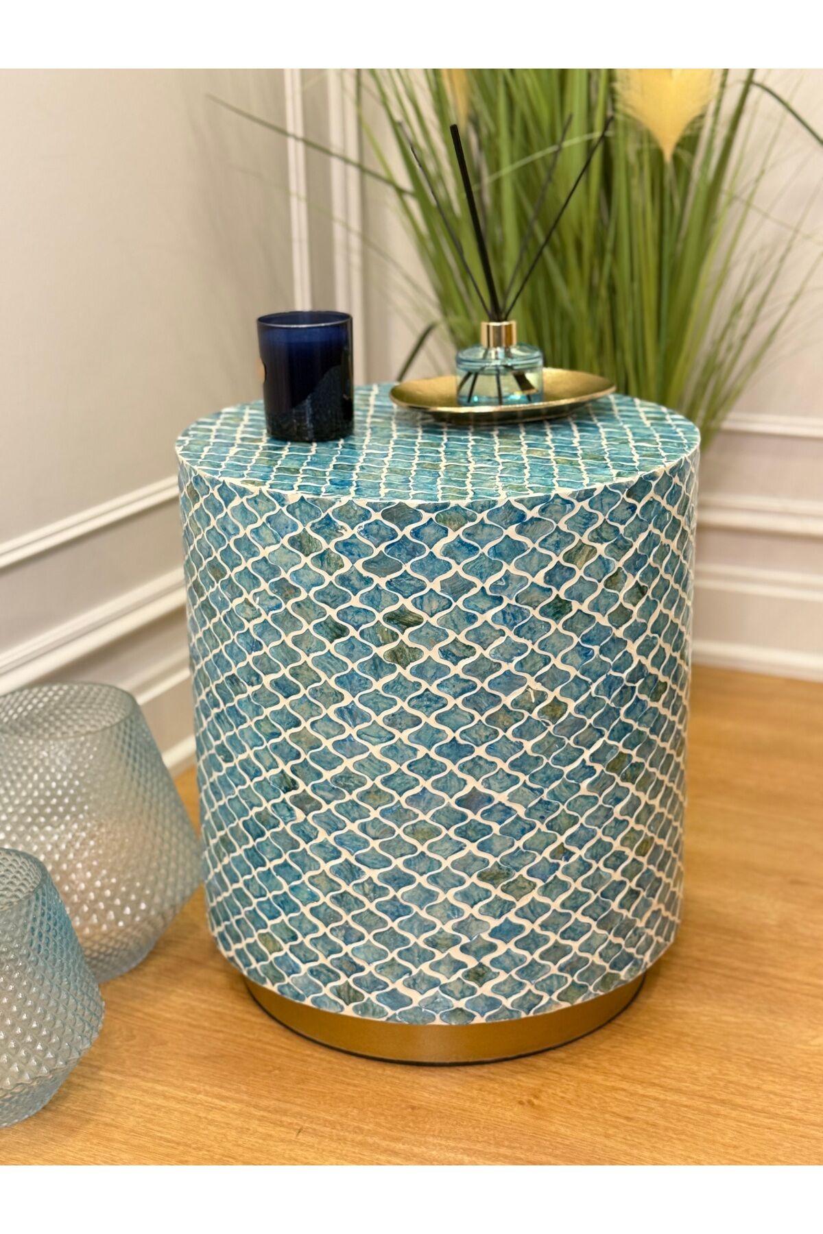 Maris Doğal Kaplama Lüks El İşçiliği Yan Sehpa / Tabure 40x40 H:45