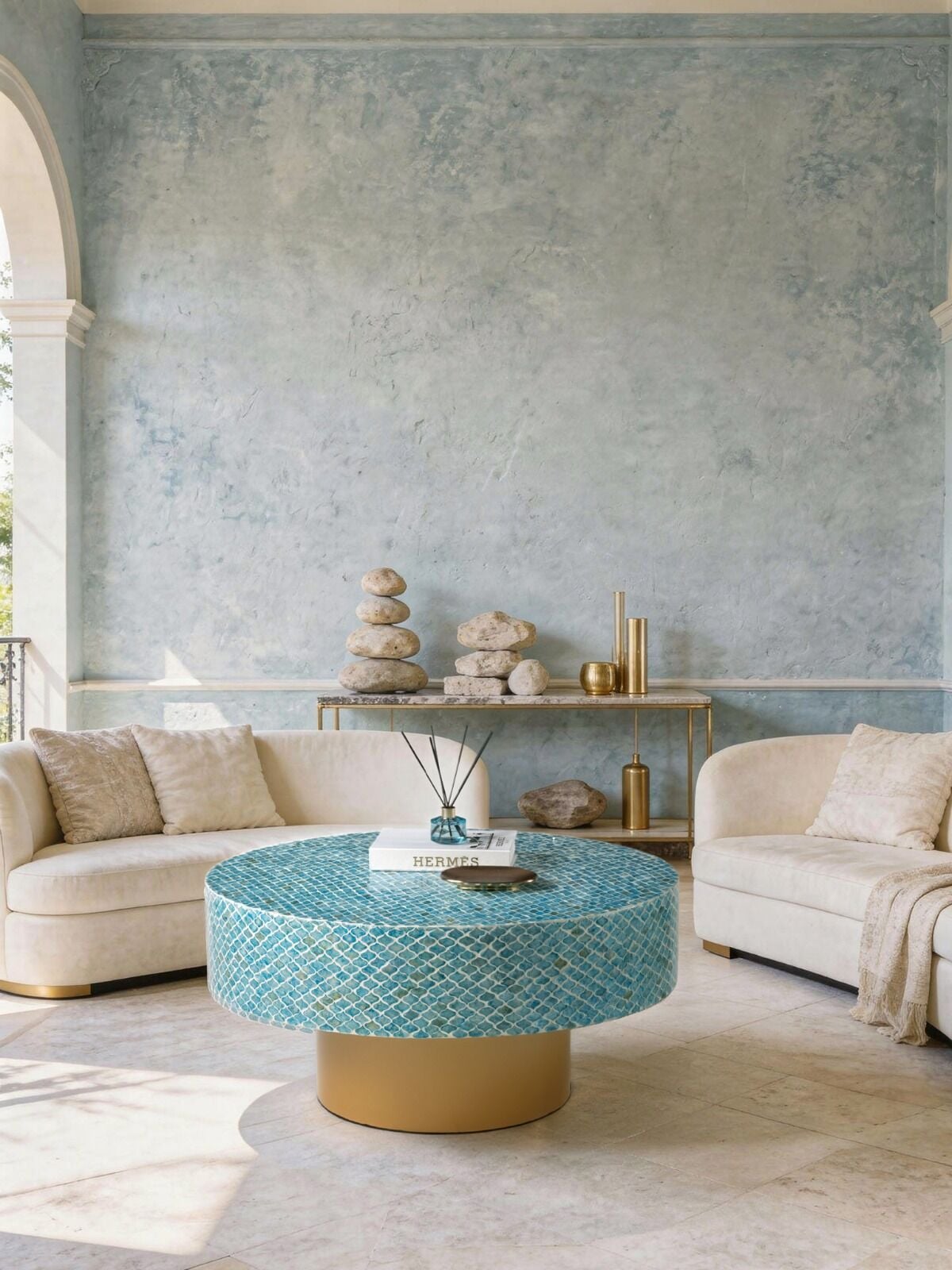 Salon, oturma odası, yatak odası veya antre kullanımına uygun olan bu şık yan sehpa; koltuk yanı sehpa, dekoratif sehpa veya tamamlayıcı mobilya olarak rahatlıkla tercih edilebilir. Doğal taş dokusu sayesinde lüks ve sıcak bir atmosfer yaratır.