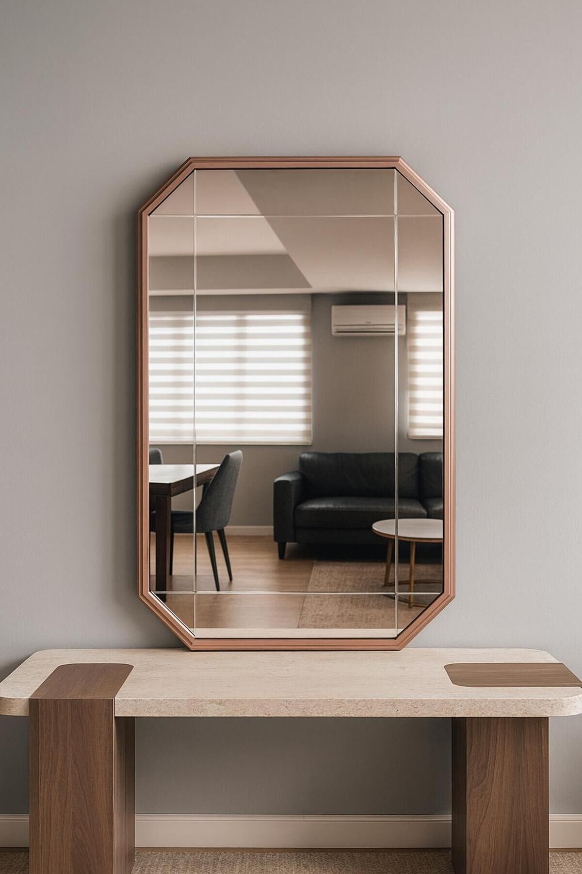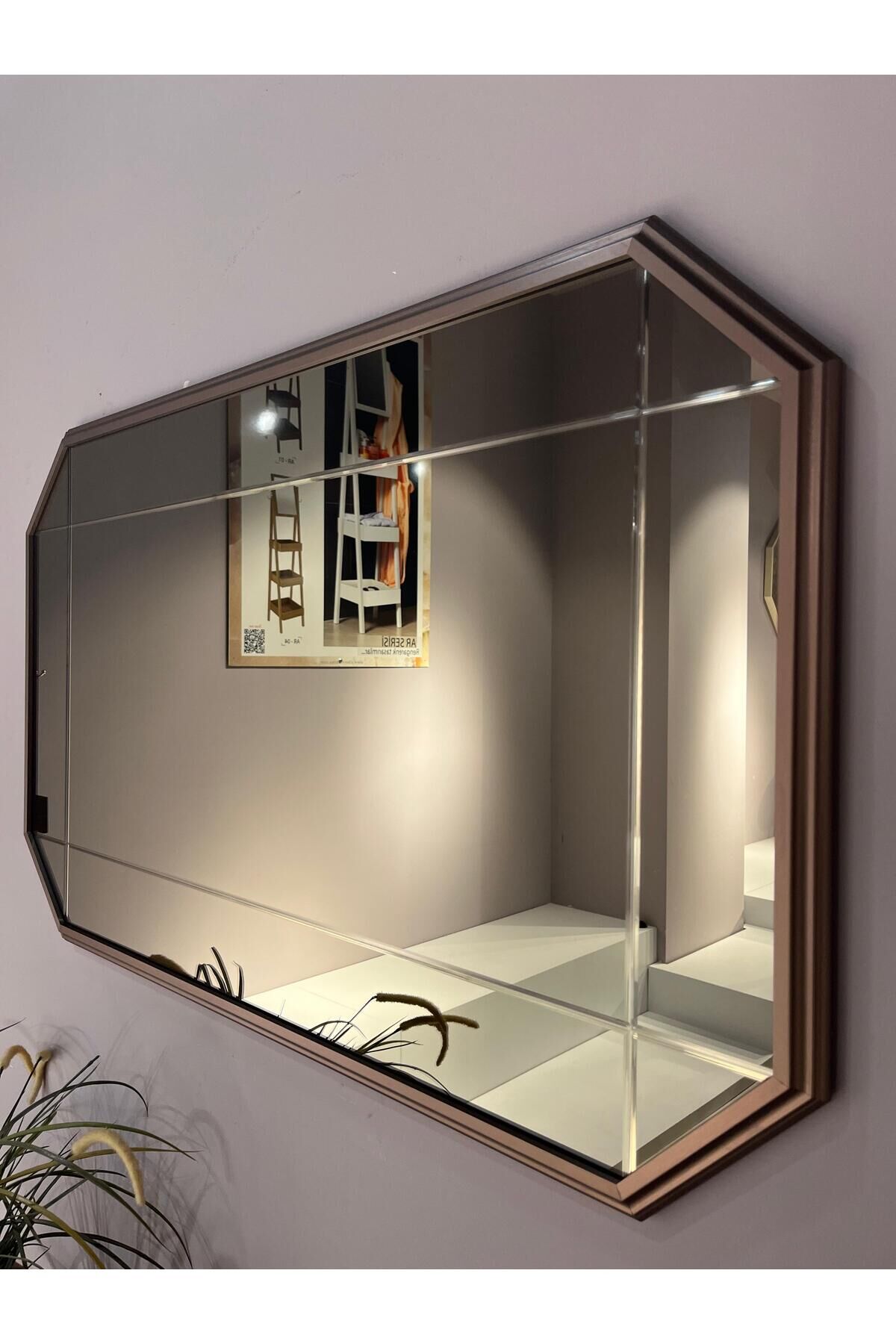 Nevore Bronz Desen Lüks Ayna 99x59Cm Dikey ve Yatay kullanma Seçeneği
