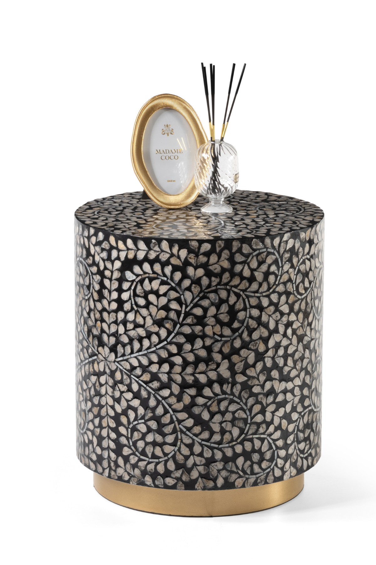 Solenne Beyaz Doğal Sedef Kaplama Lüks El İşçiliği Yan Sehpa / Tabure 40x40 H:45
