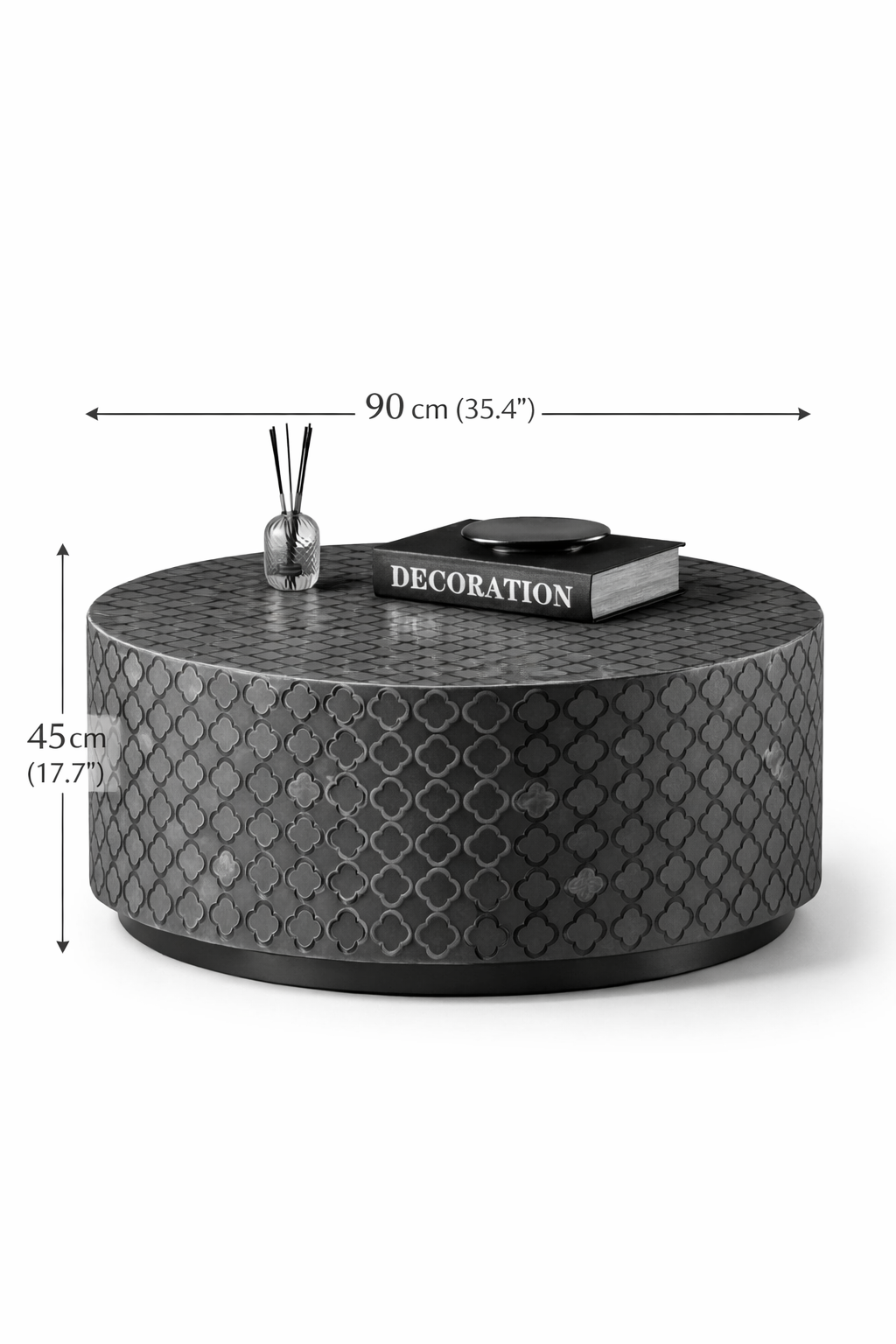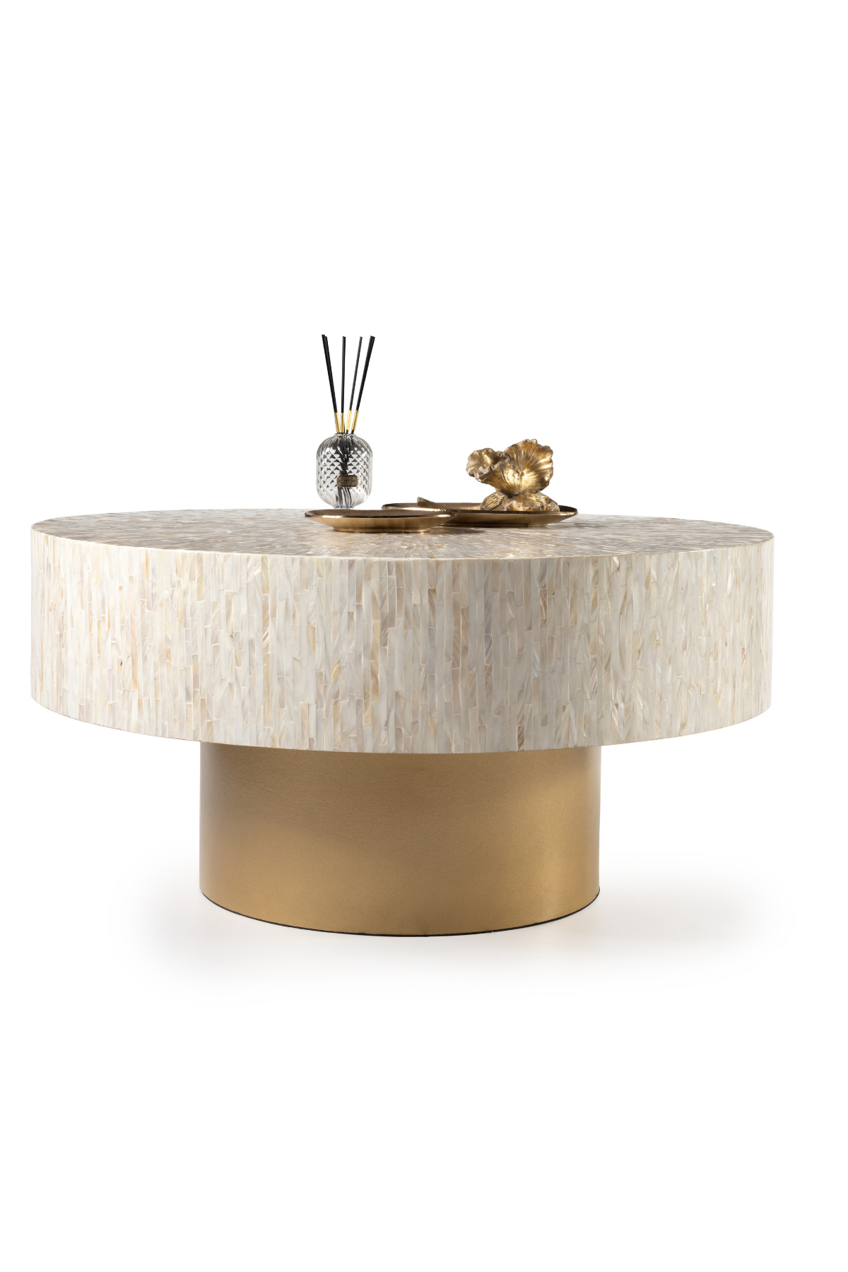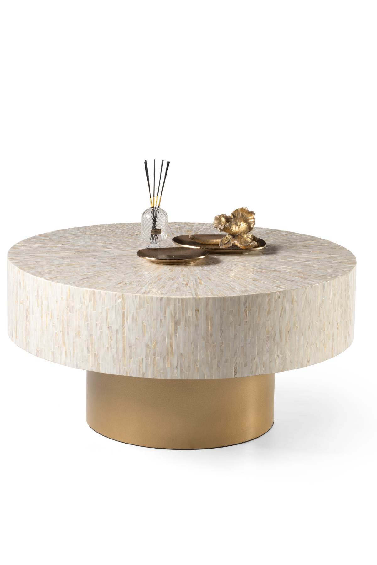Solenne Beyaz Orta Sehpa Doğal Kaplama El işçiliği 90x90 H:45 Modern Mobilya