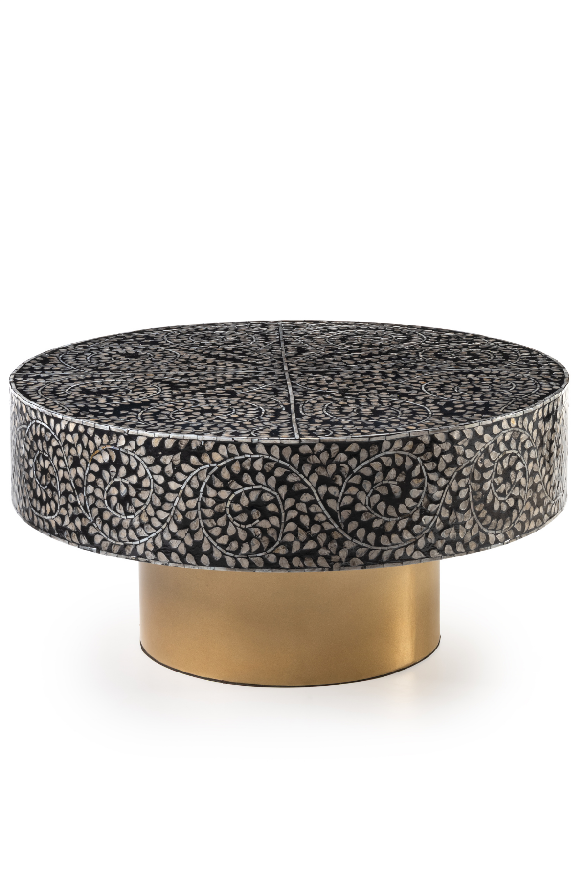 Solenne Siyah Orta Sehpa Kaplama El işçiliği 90x90 H:45 Modern Mobilya