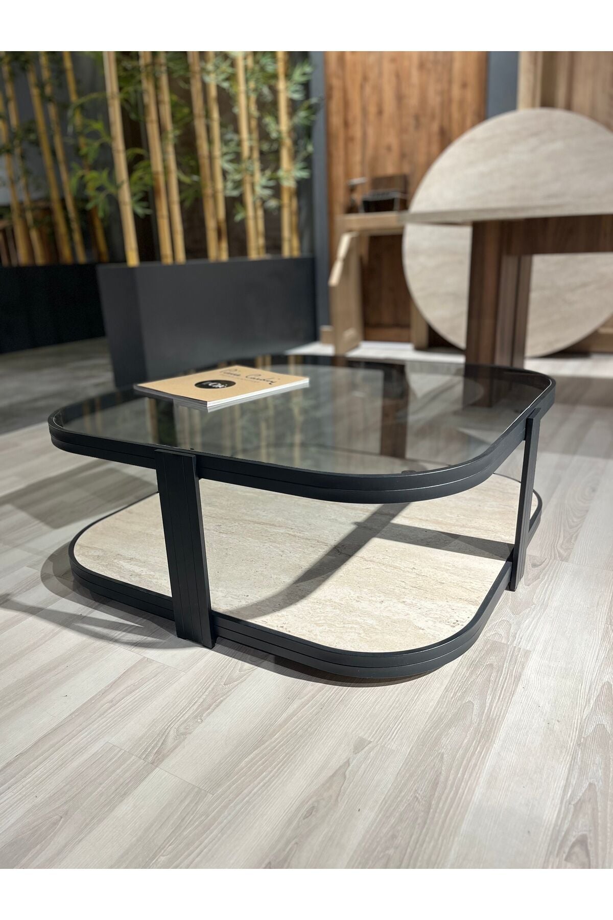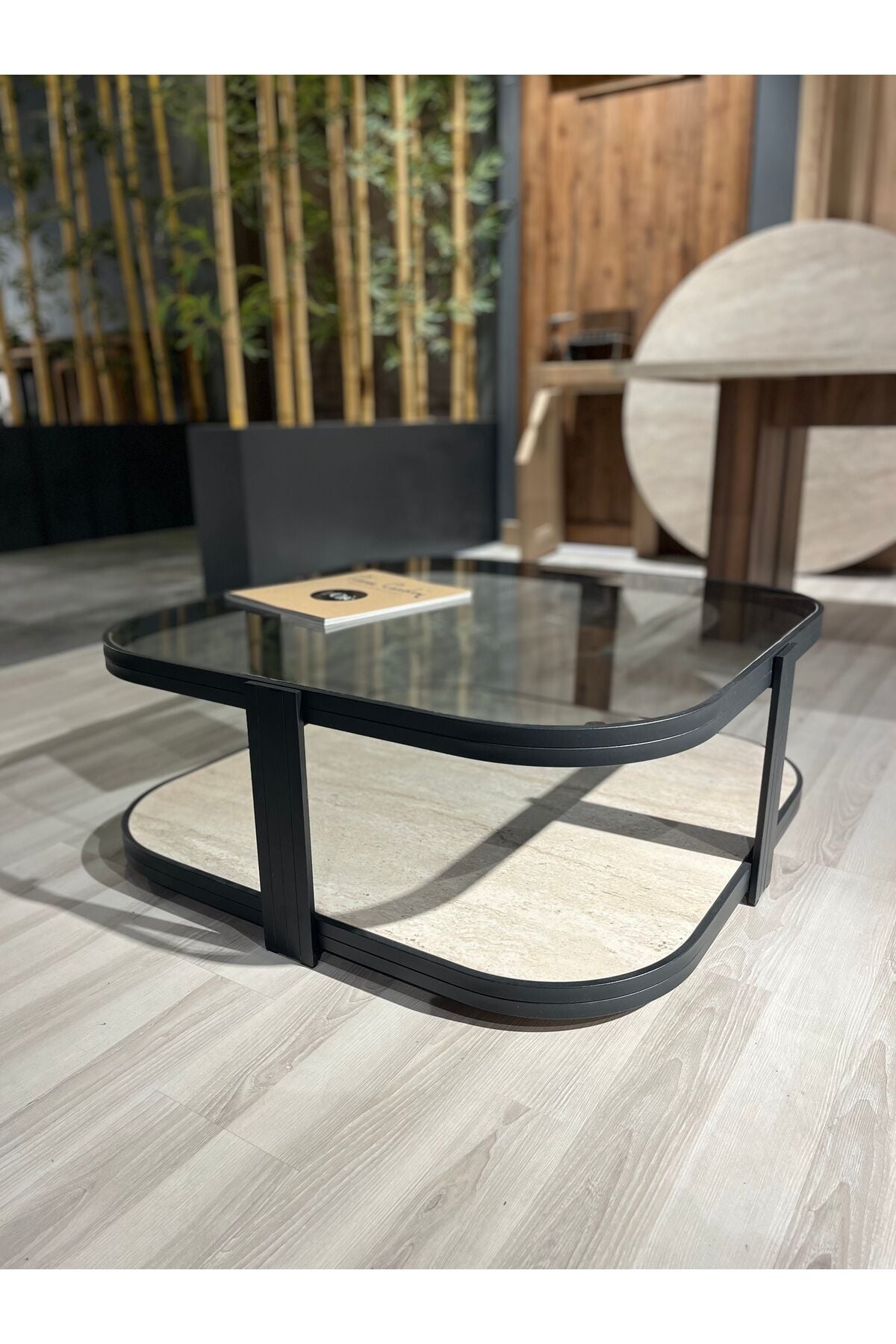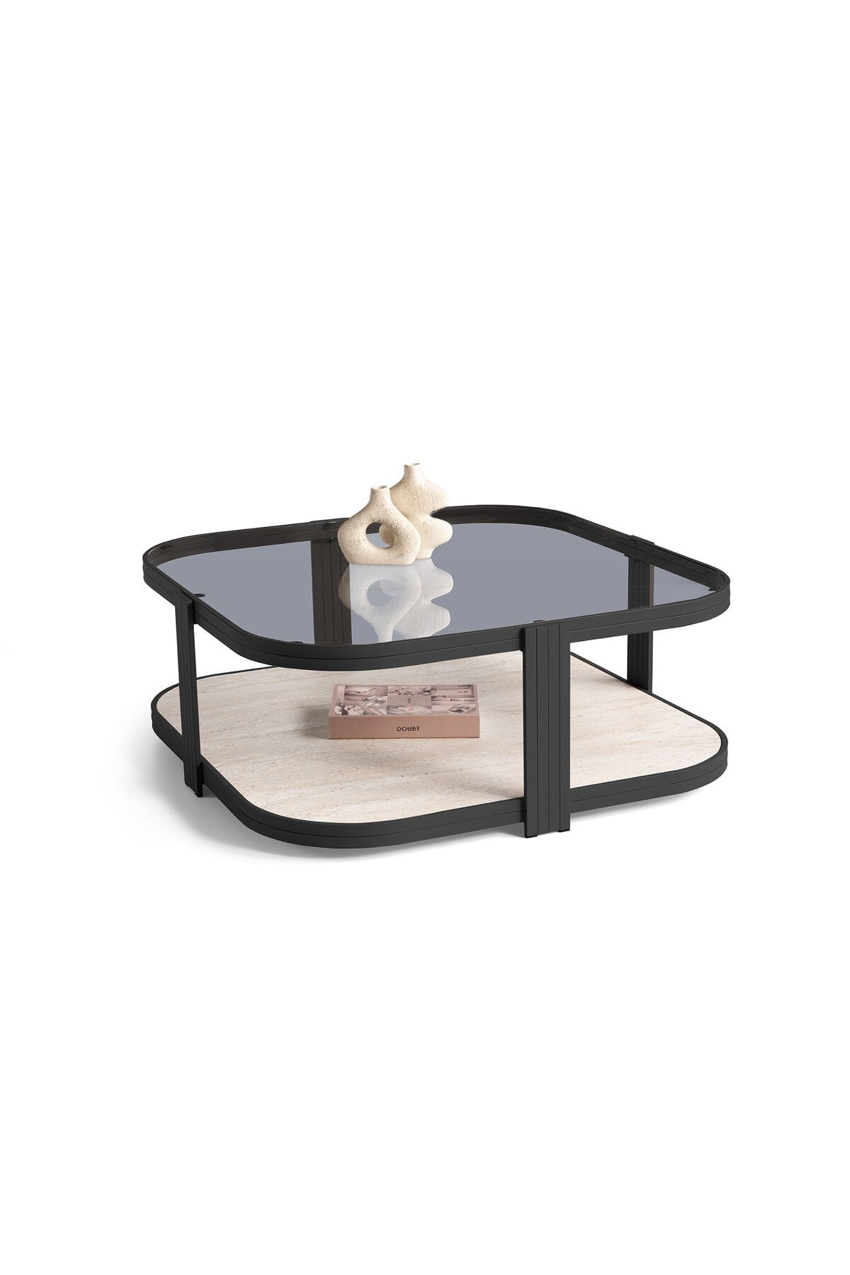 Valencia Orta Sehpa Temperli Füme Cam Modern Mobilya Siyah - Traverten