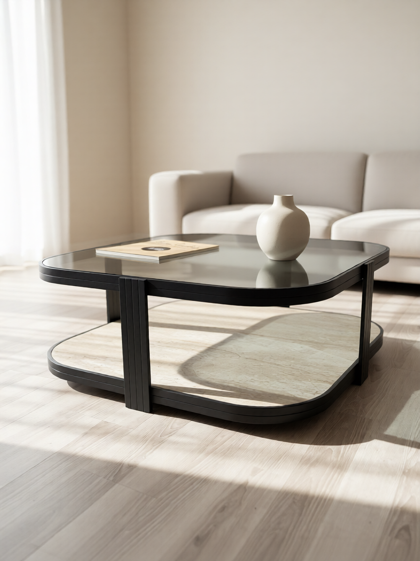 Valencia Orta Sehpa Temperli Füme Cam Modern Mobilya Siyah - Amalfi