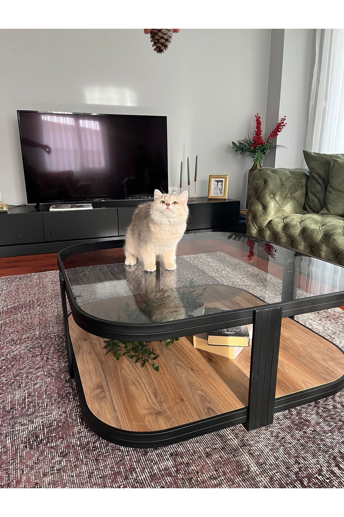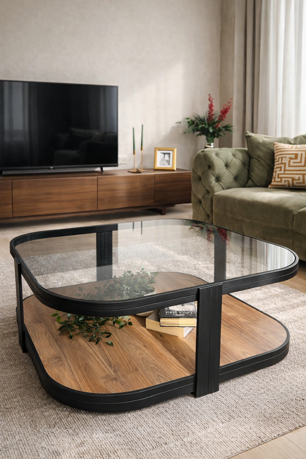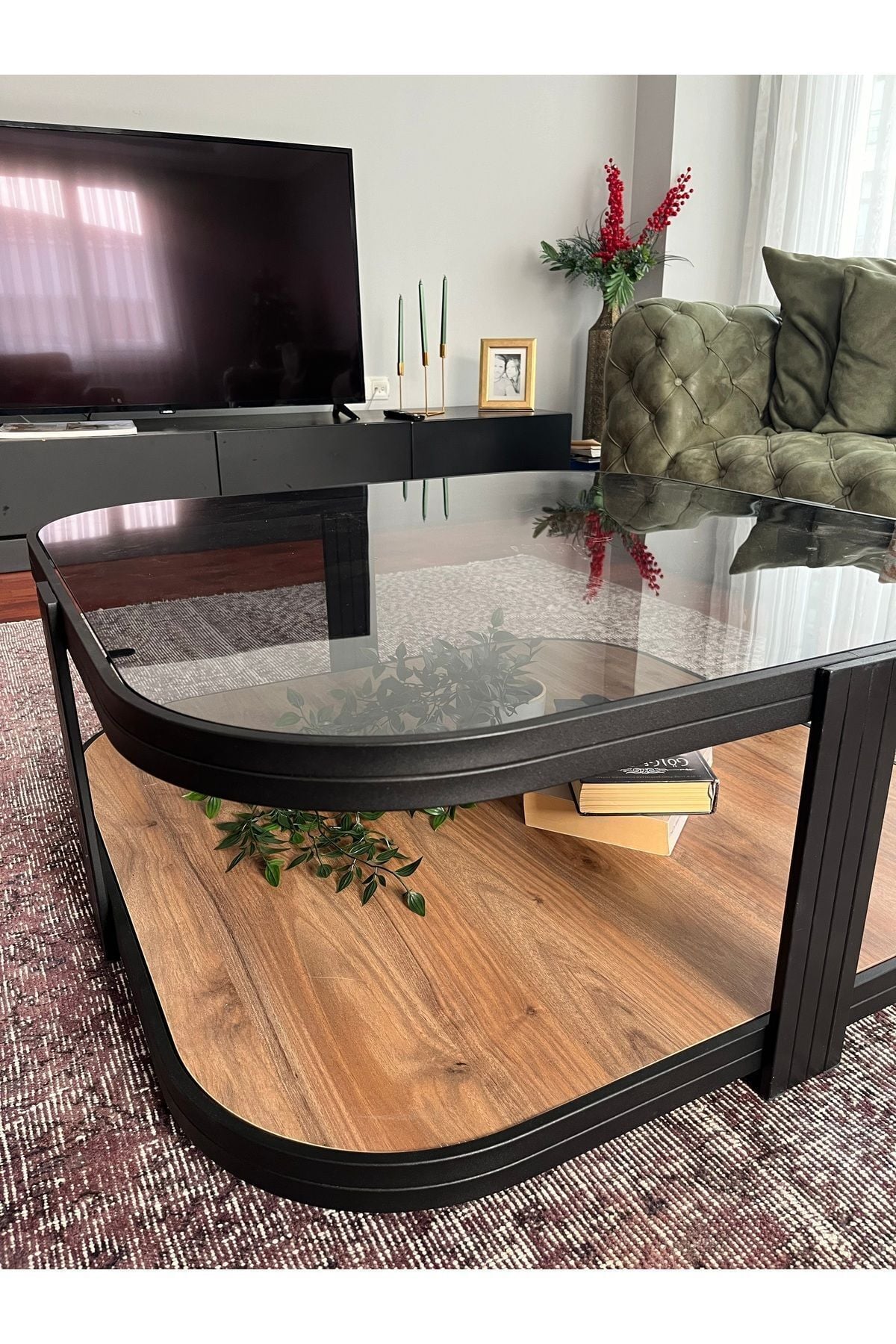Valencia Orta Sehpa Temperli Füme Cam Siyah - Amalfi