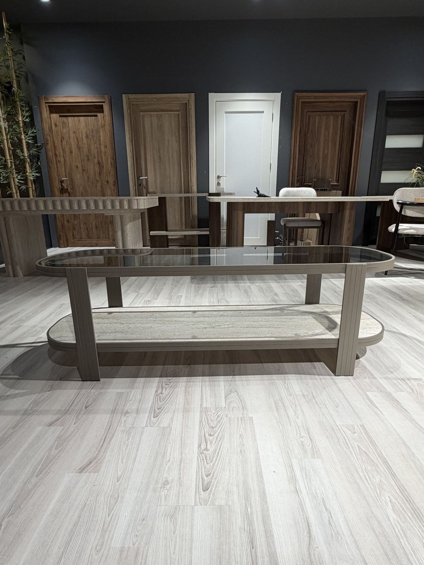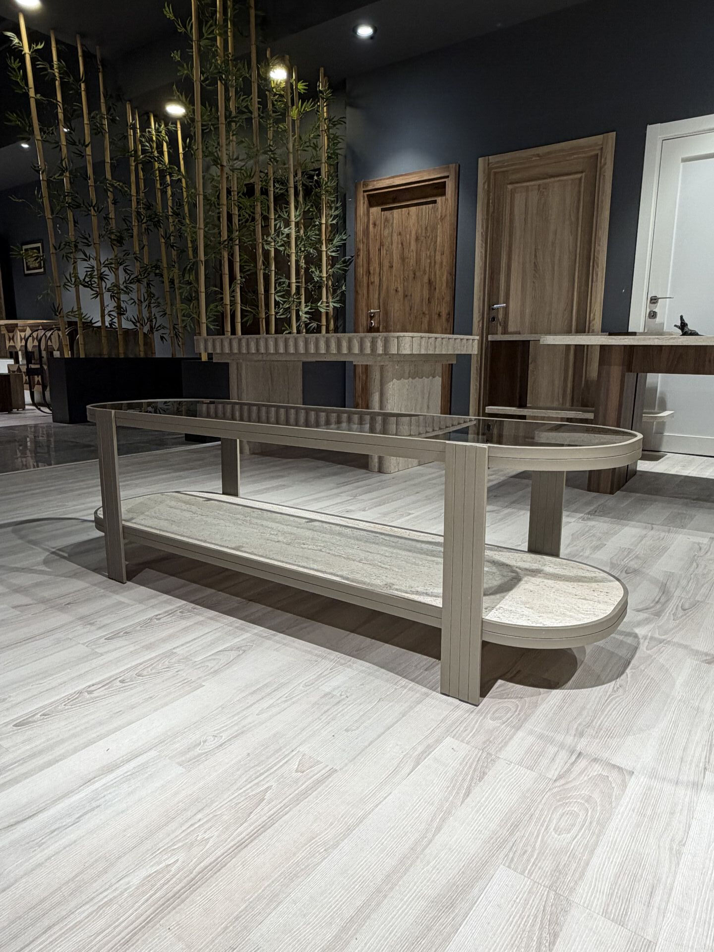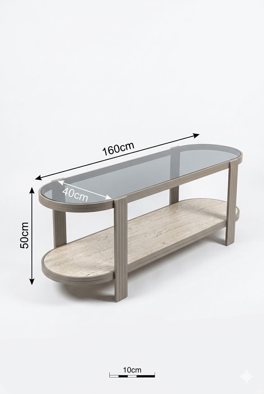 Valencia TV Ünitesi Cappucino Traverten Füme Cam 160x40