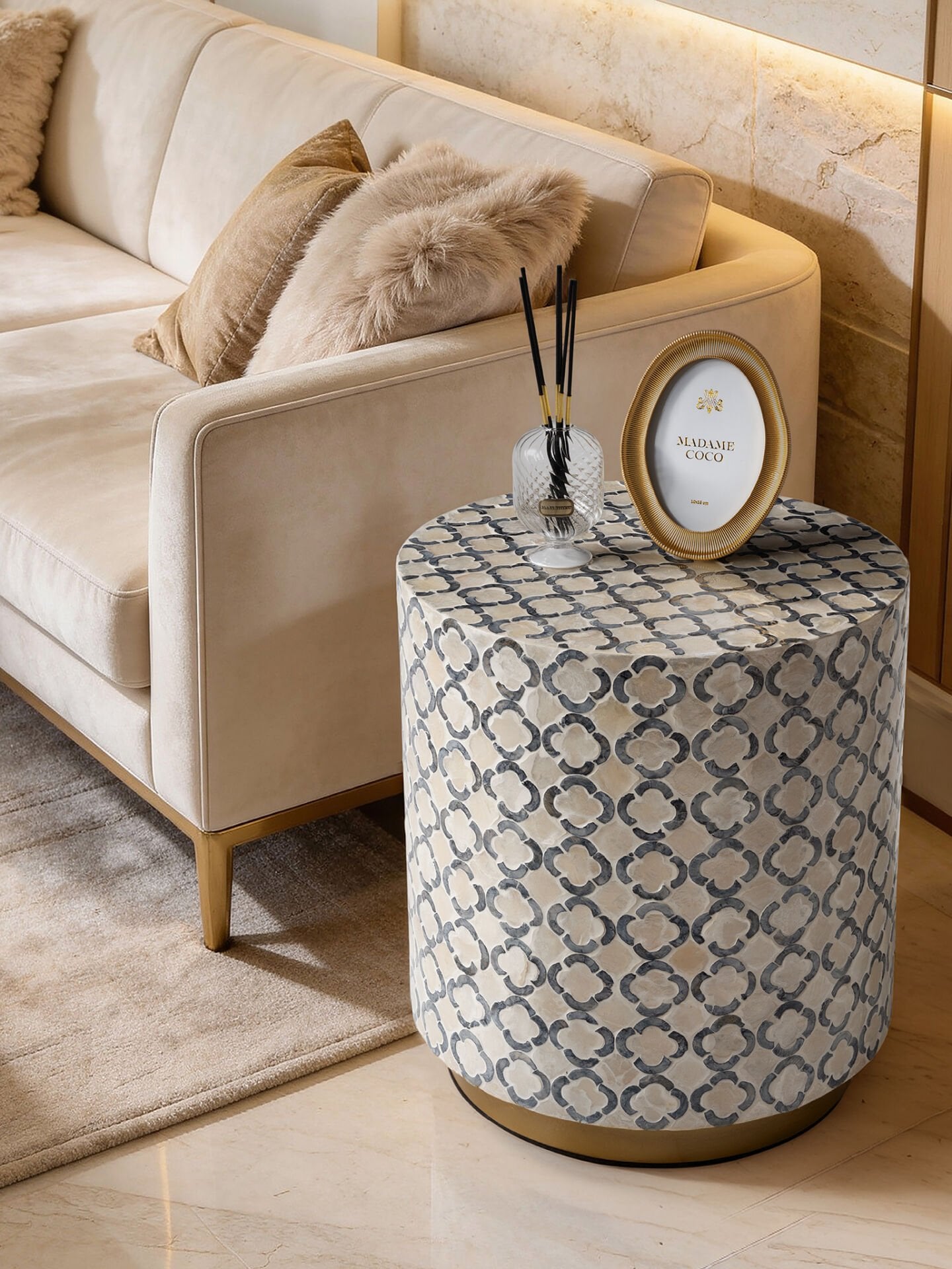 Zenya Doğal Kaplama Lüks El İşçiliği Yan Sehpa / Tabure 40x40 H:45